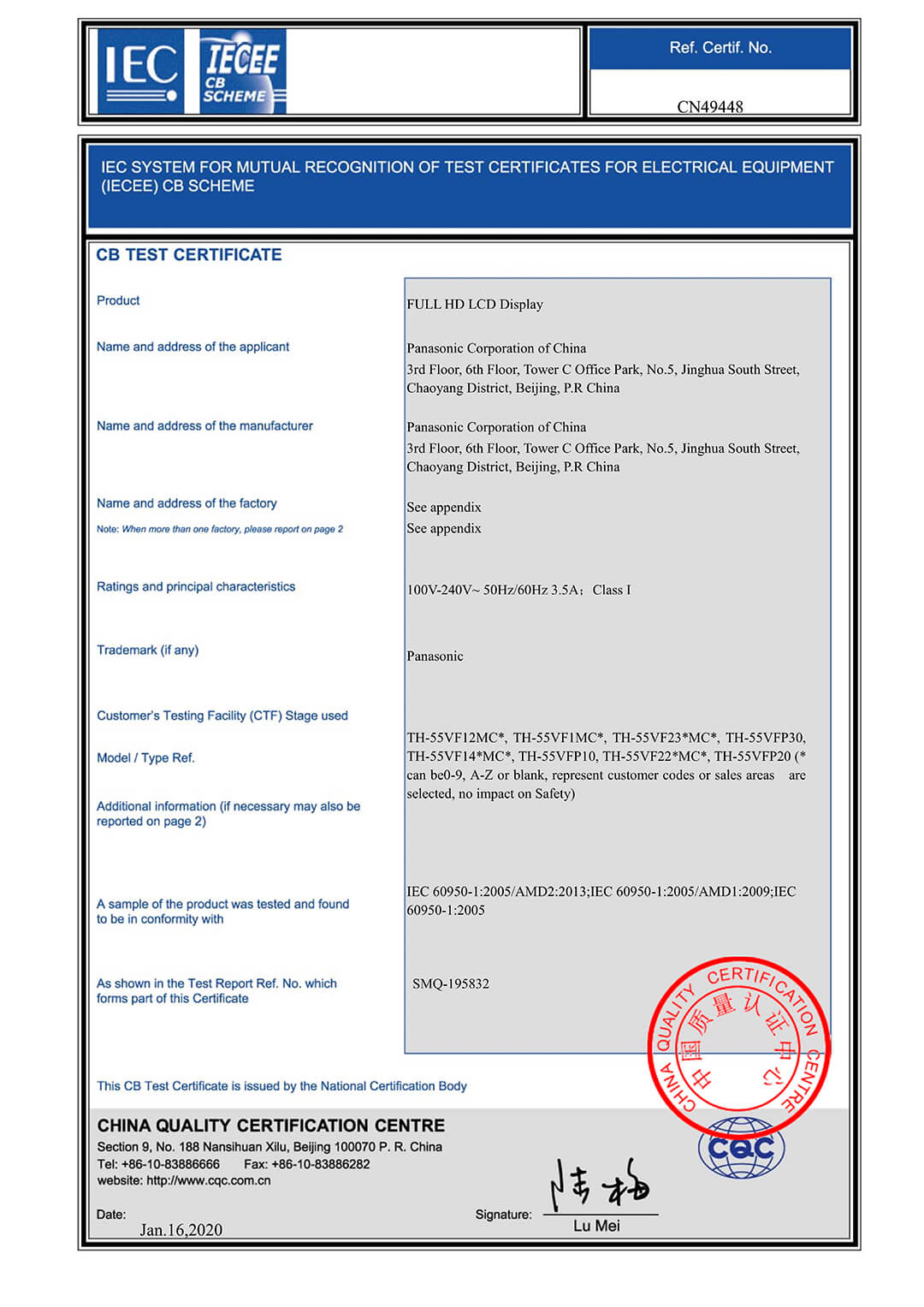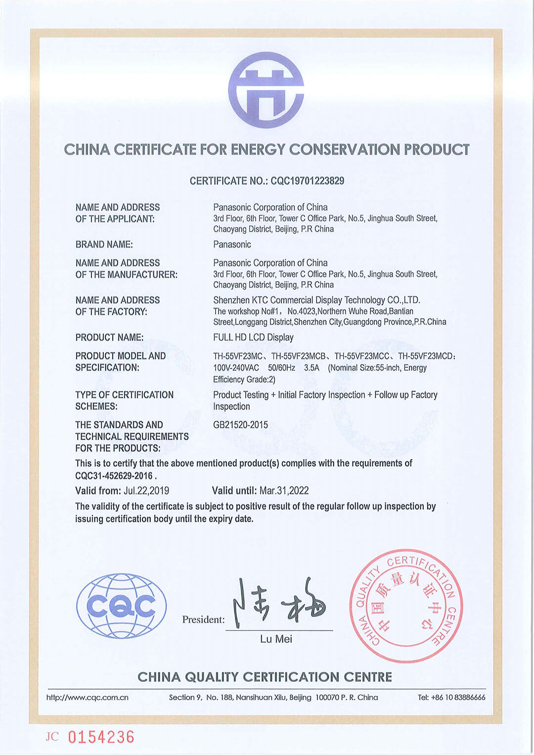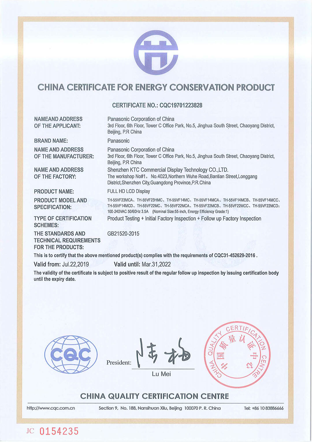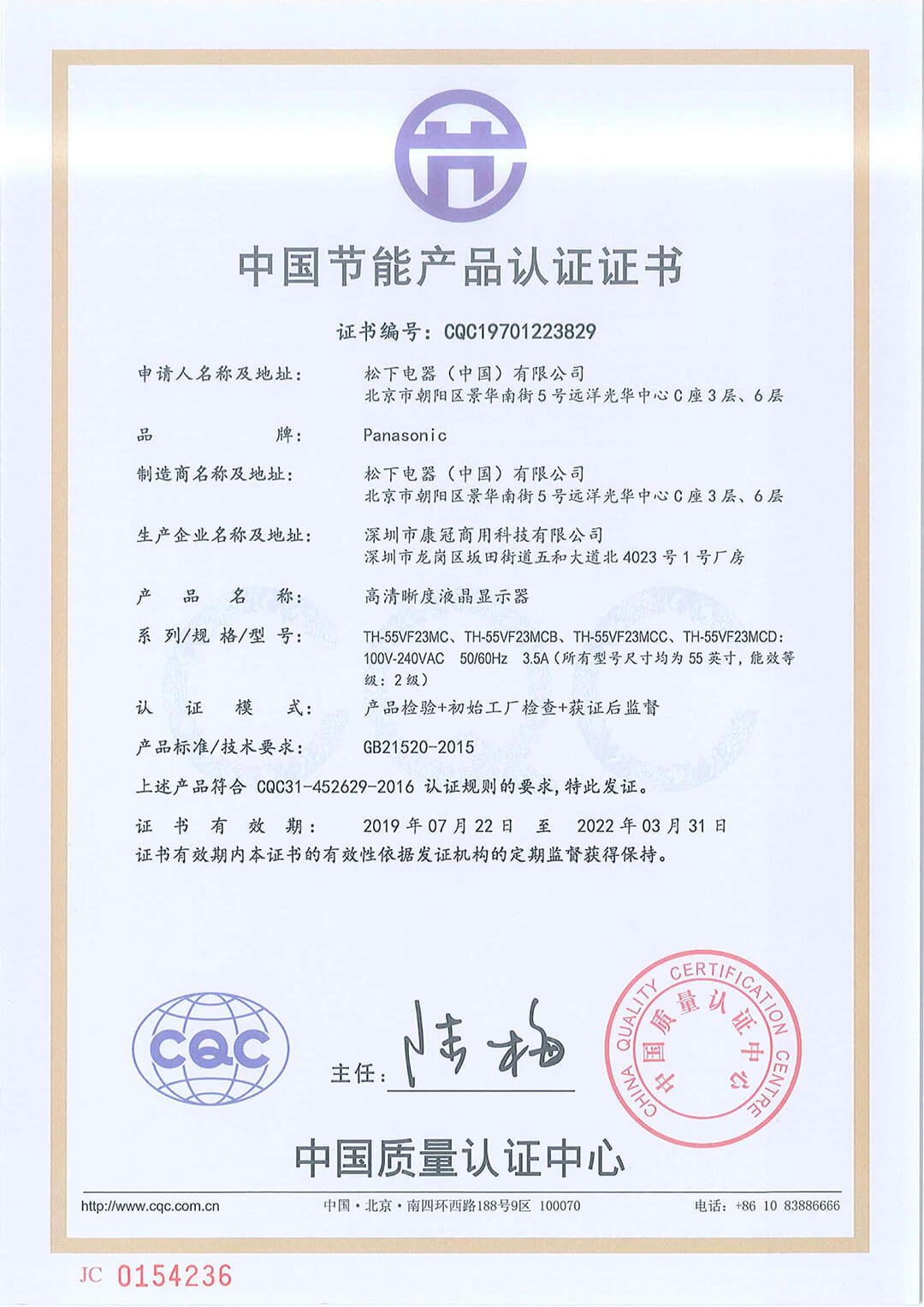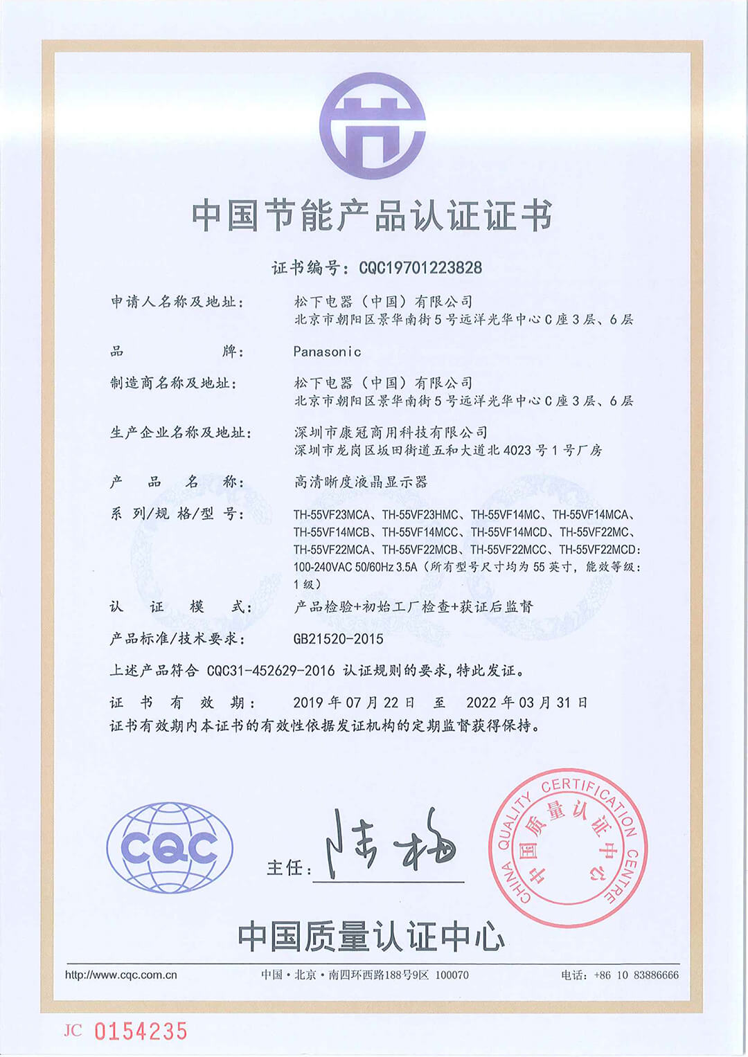 55VF-CQC節(jié)能認(rèn)證證書